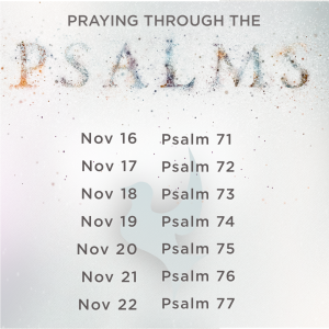 This is not just a reading plan; this is a reading and prayer plan. We are encouraging everyone to commit to praying with one Psalm every day. Take time to read the passage and reflect, then spend some time praying using the words and thoughts from the Psalm.